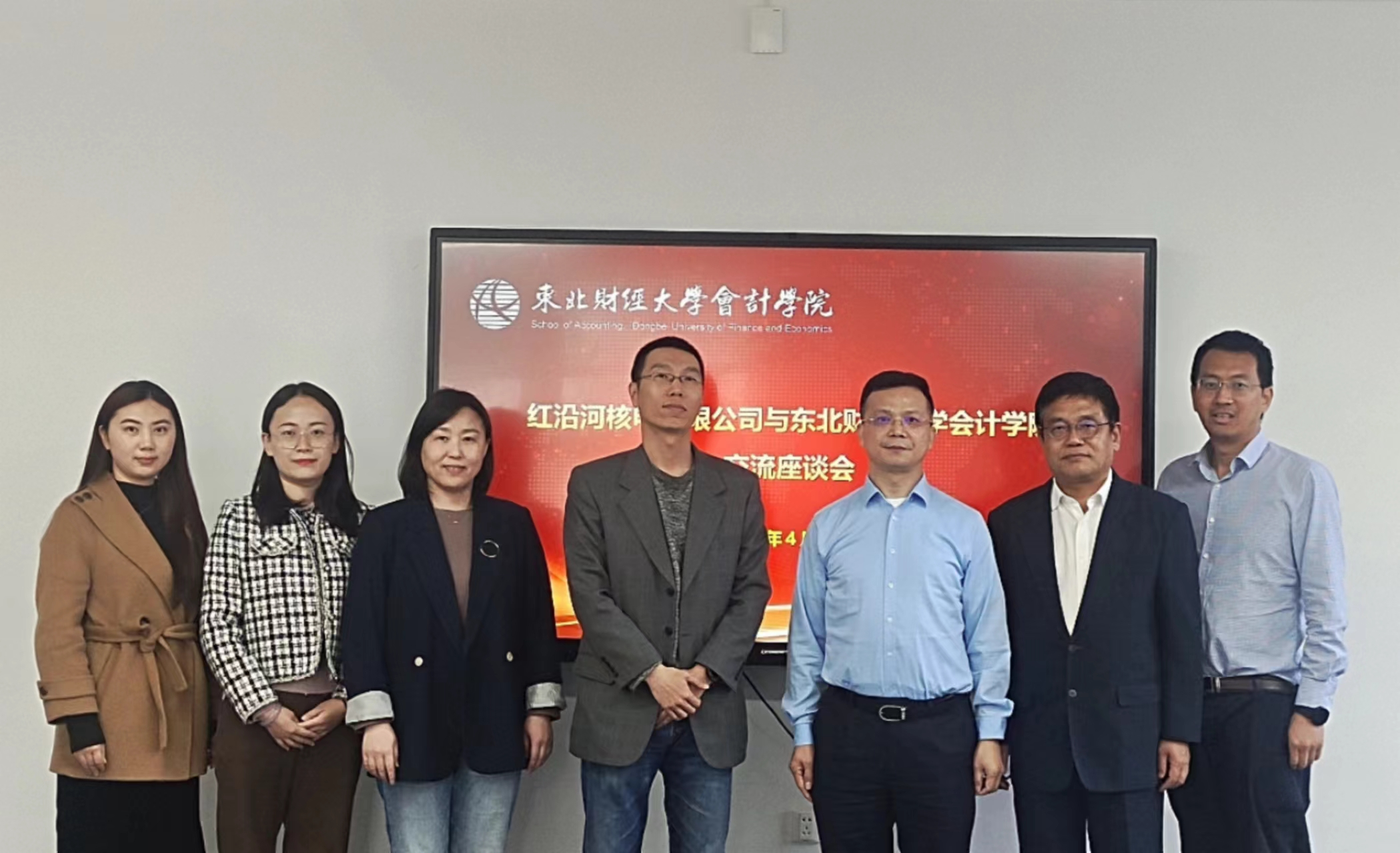 4月24日下午,辽宁红沿河核电有限公司一行到黄色视频 进行交流座谈。辽宁红沿河核电有限公司党委委员、总会计师、总法律顾问王云霄,财务部副经理杨高灿,中广核成员公司原总会计师、专职董事董明志,黄色视频 副院长张晓东,黄色视频 办公室主任刘蕊,外联与校友工作秘书高鸣,学位秘书高晓易参加本次活动。